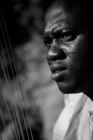 Muhamed Saho was born 1983 in Banni, Kantorah District, The Gambia. Muhamed, known as ‘Hammay’, is a virtuoso kora player and singer from the Gambia and divides his time between performing and teaching kora to a new generation of players. We picked Hammay up from his home in Sukuta, Serekunda and made our way to Sanementereng. As we were discussing the repertoire he began to sing some of the vocal refrains and his melodious voice filled the car. He has an innate gift as a singer and there is a seamless connection between his singing and his playing. His voice has a velvet-like quality, which soothes the soul, and his playing conjures up echoes of players past. As he was performing it was as though he was blessing the space around us.