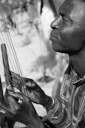 Sherrifo Konteh was born in 1973 in Brikama, The Gambia. He is the youngest son of the celebrated kora legends, Alhagie Bai Konteh (1920 - 1983) and since the passing of his elder brother, Dembo Konteh in January 2014, is one of his only surviving sons who is still playing and performing the kora. Sherrifo himself now lives on the outskirts of Brikama in a very quiet and peaceful area, ideal for his rehearsing and music-making. His music is highly rhythmic with reminiscences of the Casamance way of playing and his singing is typical of the griot recitative style. He performed for us an upbeat and strident version of Jula Jekeré, which invoked the memory of his great forefathers.